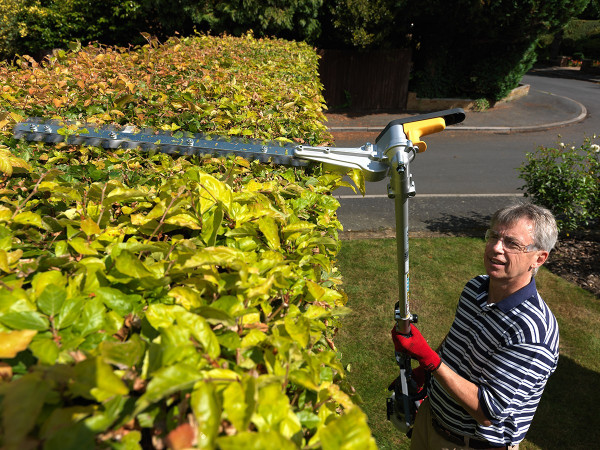 Parocīga versija (bez vārpstas) un pagarināma versija ar 60 cm vārpstu dzīvžogu un krūmu ieveidošanai vai vienkārši apgriešanai. Griešanas leņķis ir regulējums. Asmeņi automātiski uzasinās un iekļauj lūšanas aizsargu.