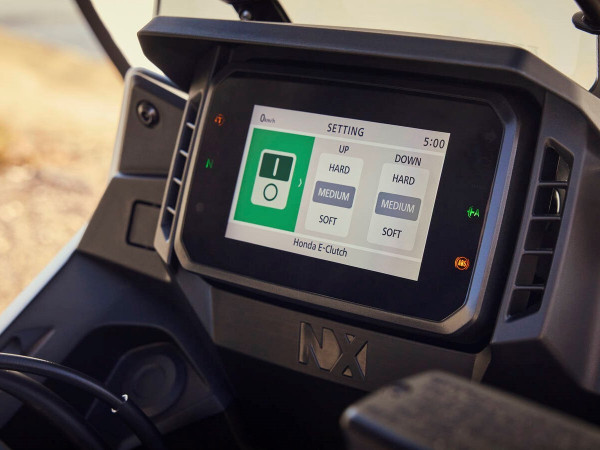 2026 gada Honda A2 standartam atbilstošais mini piedzīvojumu motocikls atkal dodas uz priekšu. Honda E-Clutch tehnoloģija nonāk NX500 modelī, nodrošinot lielāku ikdienas daudzpusību un komfortu. A2 standartam atbilstoša jauda un griezes moments 471 cm3 dzinējam paliek nemainīgi — 35 kW un 43 Nm —, savukārt Honda Selectable Torque Control sistēma sniedz pārliecību visos laikapstākļos. Plašajā aprīkojumā ietilpst 41 mm Showa SFF-BP USD dakša, dubultie diski priekšā, ko darbina divu virzuļu suporti. Jaudīgs LED priekšējais lukturis paver ceļu priekšā naktī, savukārt 5 collu TFT ekrāns piedāvā Honda RoadSync viedtālruņa savienojamību, ko vadām ar apgaismotu 4 virzienu pārslēgšanas slēdzi. 2026. gada modeļa atjauninājumus papildina jaunas krāsu opcijas.