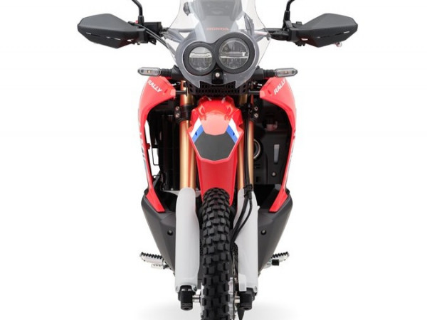 Более широкое сиденье CRF300 RALLY с резиновым амортизатором и высотой посадки 885 мм стало на 10 мм ниже, а топливный бак увеличен на 2,7 л до 12,8 л. Руль имеет утяжелители внутри для минимизации вибраций, а подножки — резиновые вставки сверху, при этом светодиодные поворотники теперь имеют гибкое крепление для большей долговечности.