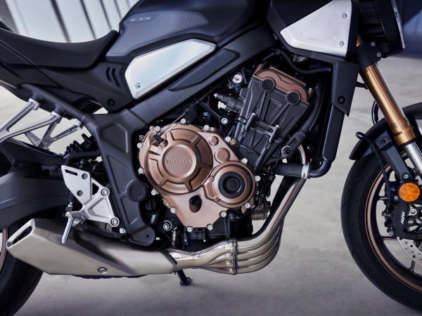 Современный 4-цилиндровый двигатель – признанный эталон надежности и производительности. В Honda CB650R Neo Sports Cafe он стал еще отзывчивее и мощнее, сохранив характерную форму выпускных коллекторов, полюбившуюся фанатам Honda еще на CB650F. Ансамбль из четырех параллельных труб – настоящее произведение искусства, запоминающееся всем, кто хоть раз увидел его.